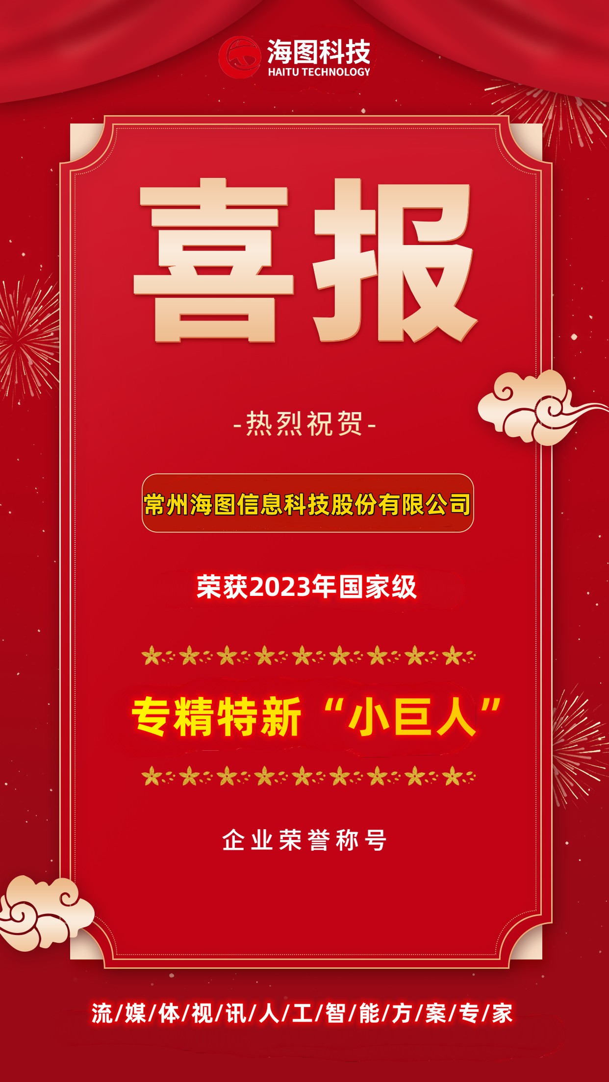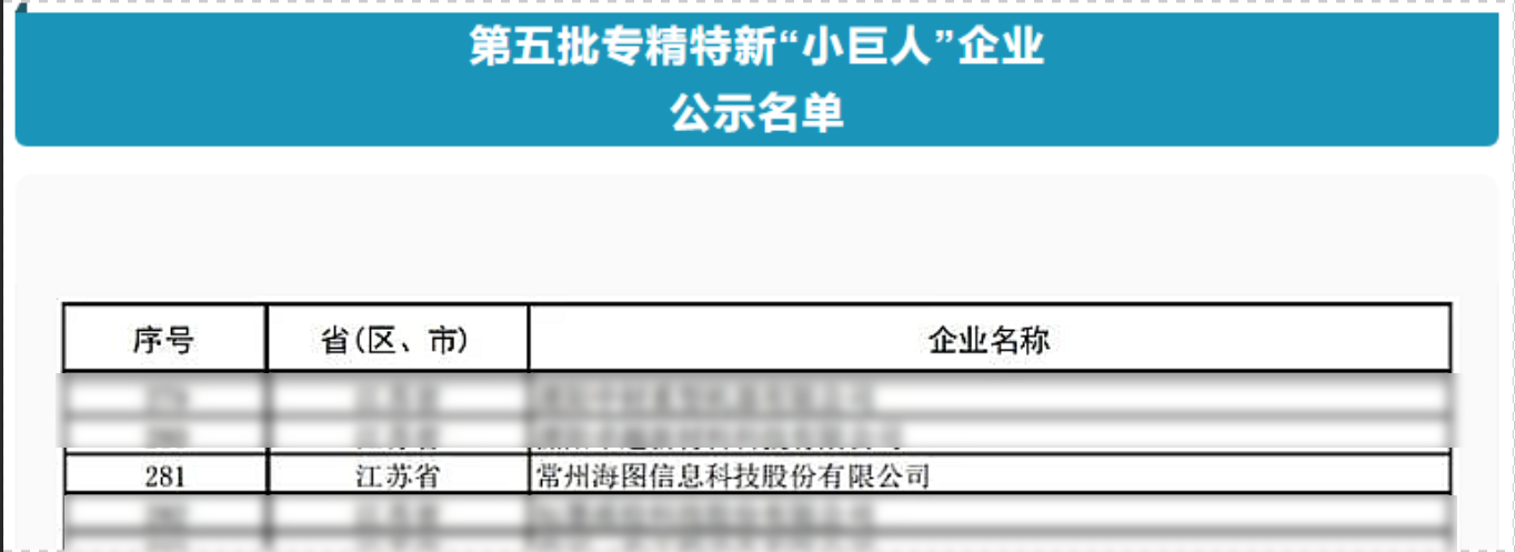 熱烈祝賀——常州海圖信息科技股份有限公司榮獲國 家級專精特新小巨人企業稱號