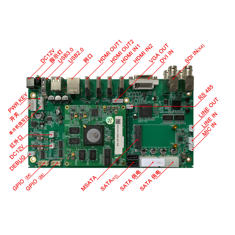 Hi3531DV100定制開發(fā)板提供4K@30 HDMI輸入、4K@30 HDMI輸入、4K@30輸出、1080P@60輸出、1080P SDI 輸入、1080P DVI 輸入、 USB3.0、USB2.0、SATA、2路10M/100M/1000網(wǎng)絡(luò)、RS232、RS485、GPIO等豐富外圍接口。